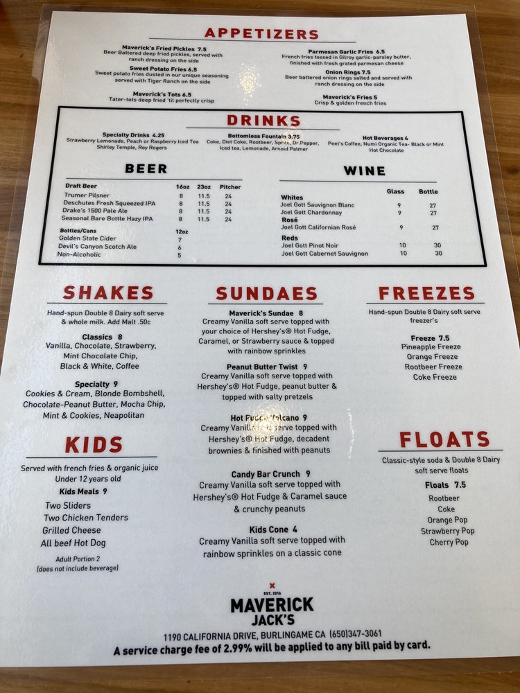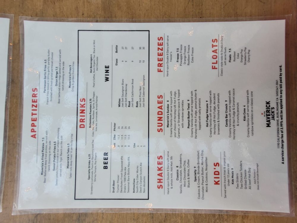 Welcome to Maverick Jack’s, a vibrant addition to the New American dining scene located in Burlingame, CA. Specializing in mouthwatering burgers, this restaurant caters to a diverse clientele with a thoughtfully crafted menu that includes plenty of vegan and vegetarian options. Whether dining in or enjoying takeout, the casual, welcoming atmosphere invites both families and solo diners to relax and indulge.